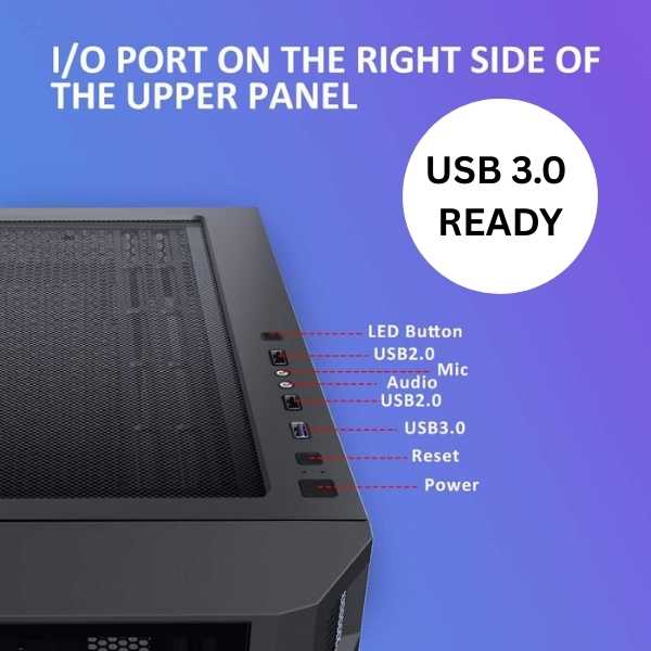 | I/O Panel | 1 × USB 3.0, 2 × USB 2.0, 1 × Audio In, 1 × Mic, LED Button, Power |