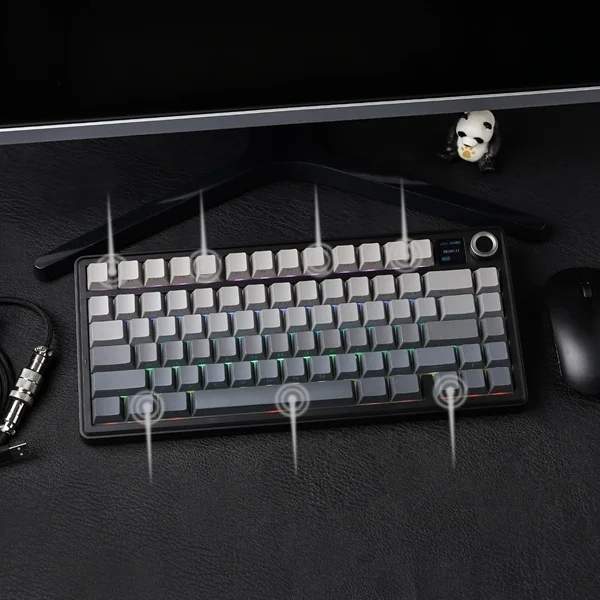 The AULA F75 Max in Gradient Grey blends minimalist aesthetics with serious performance. Designed in a compact 75% layout, it saves desk space without sacrificing essential keys. The side-printed keycaps give it a clean, premium look while maintaining full visibility when needed.