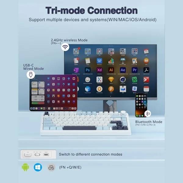 The AULA F75 Mechanical Keyboard (Ice Blue) combines a compact 75% layout with high-performance Reaper mechanical switches, delivering precision, durability, and clean aesthetics. Designed for gamers, coders, and creators who want more desk space without sacrificing essential keys, the F75 offers smooth keystrokes, vibrant RGB lighting, and a stylish Ice Blue finish that stands out on any setup.