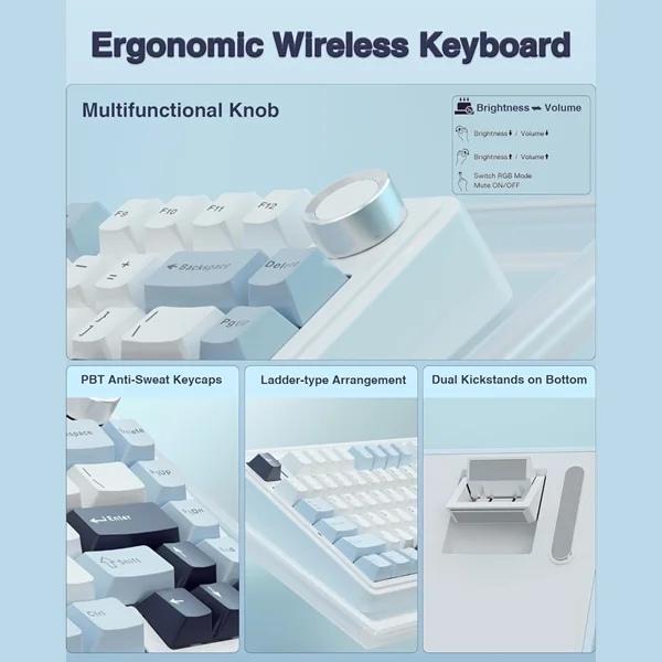 AULA F75 Mechanical Keyboard with Reaper Switch (Ice Blue)