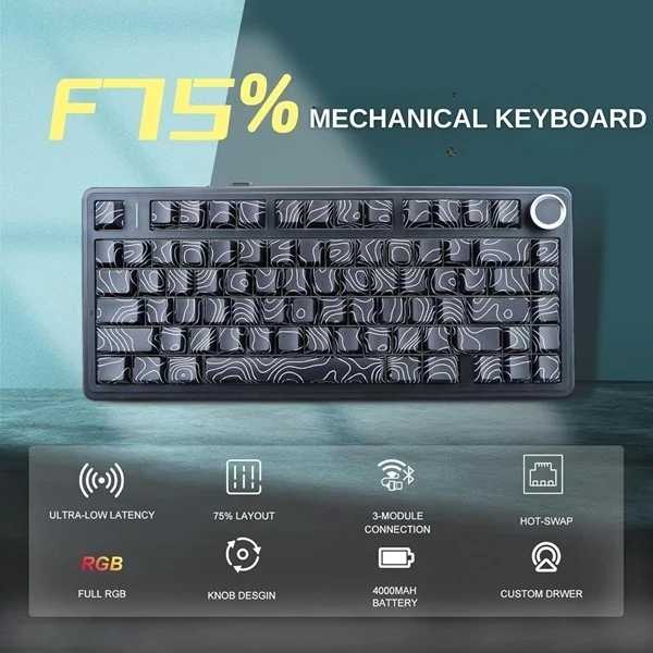 Its side-printed keycaps provide a clean minimal look while maintaining clear visibility, and the Black Contour colorway adds a bold, modern edge to any setup. Whether you are gaming, coding, or working long hours, the AULA F75 offers stability, durability, and seamless connectivity across devices.