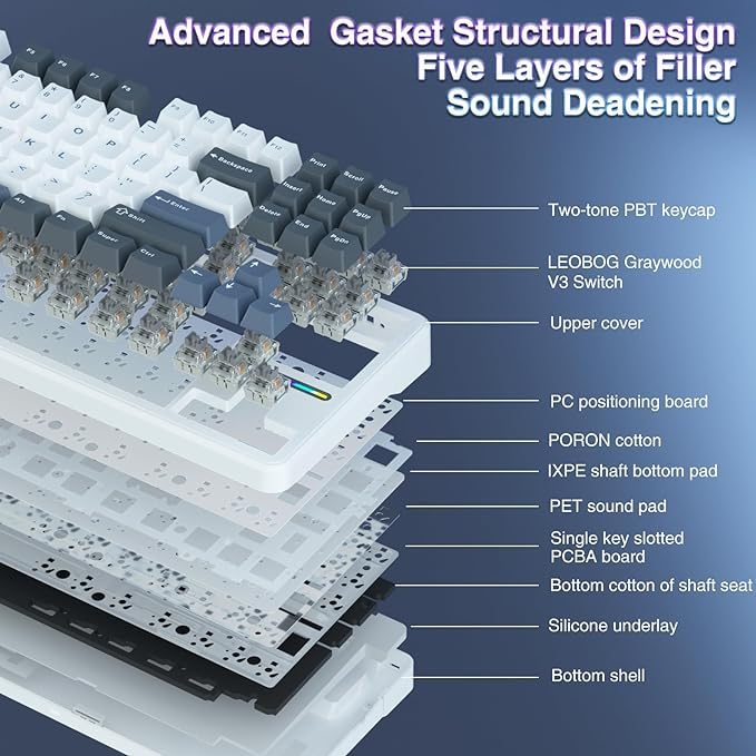 The Graywood mechanical switches deliver a smooth, balanced keystroke with satisfying feedback, while per-key RGB lighting adds customizable style without screaming for attention. Its Smoke Blue color gives a premium, modern look that fits both gaming and work setups.