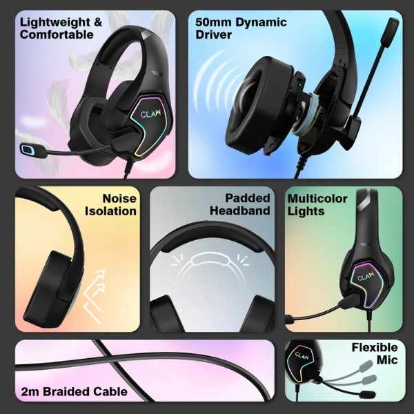 CLAW GH40 Wired RGB Gaming Headset with Noise Cancelling Mic & 50mm Drivers