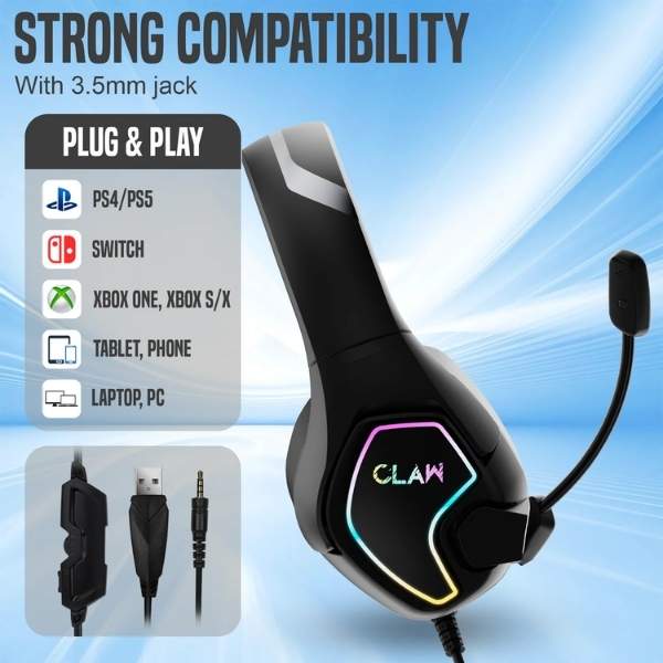 CLAW GH40 Wired RGB Gaming Headset with Microphone