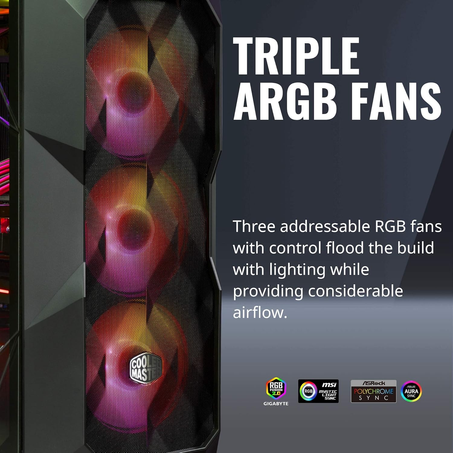 - Pre-installed CF120 ARGB fans provide ample airflow, ensuring low temperatures, high performance, and eye-catching aesthetics during even the most intense gaming sessions.