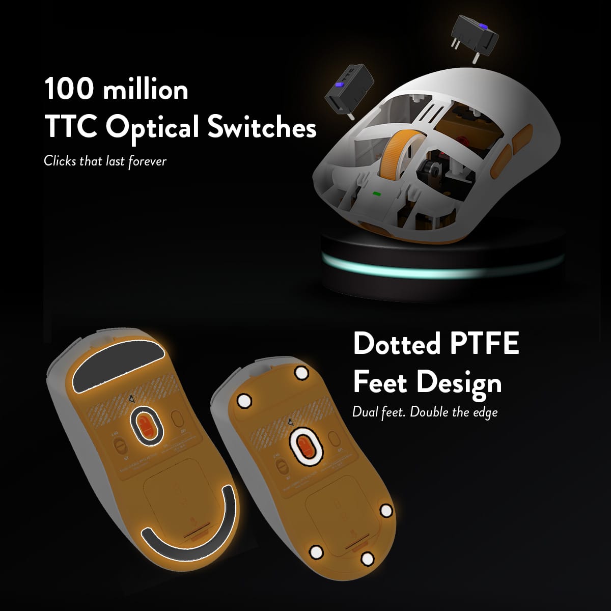 PixArt PAW3311 Optical Sensor:- Delivers precise tracking with adjustable DPI for competitive FPS and fast-paced gameplay.