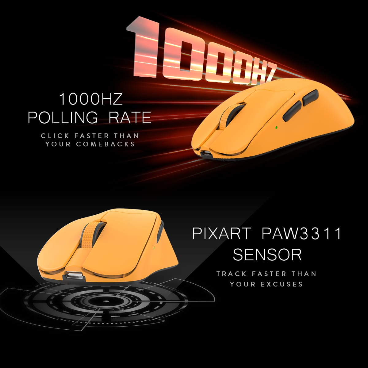 PixArt 3311 Optical Sensor:- Accurate tracking with adjustable DPI settings for both fast flicks and pixel-perfect aim.