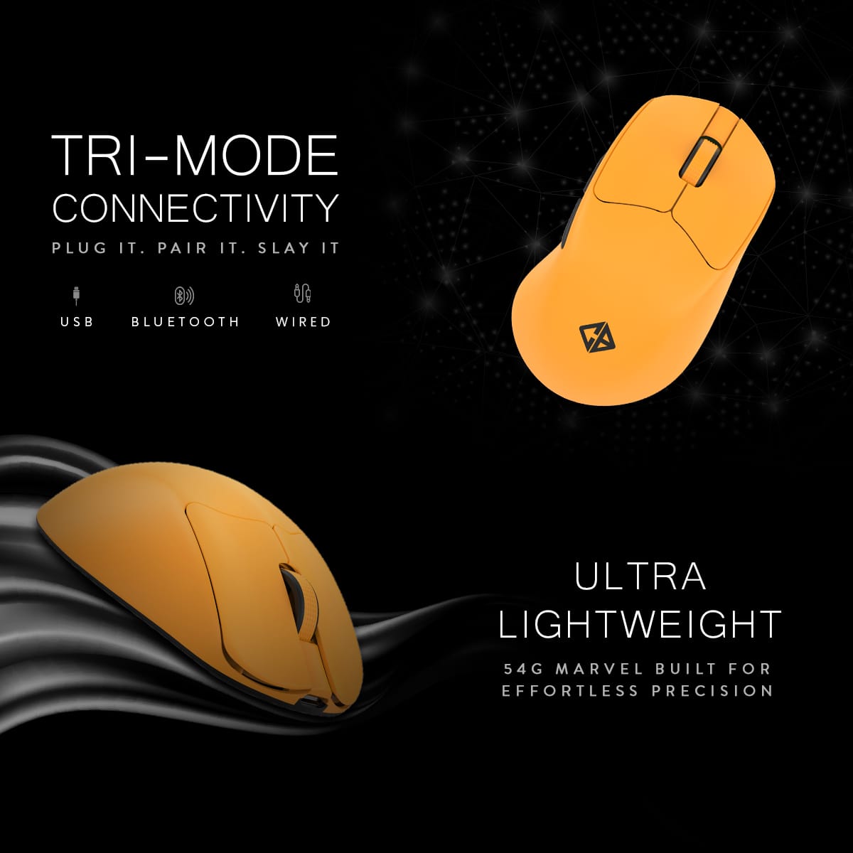 Powered by the PixArt 3311 optical sensor, the Ignis delivers reliable tracking, adjustable DPI, and smooth performance whether you are clutching in Valorant or grinding ranked late at night. With tri-mode connectivity, you get 2.4GHz wireless for low latency gaming, Bluetooth for productivity setups, and wired mode when you want zero compromises.
