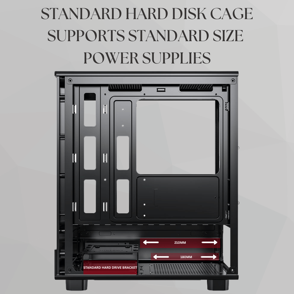 The perfect balance of performance, airflow, and style, DB330M Gaming Cabinet is designed for Micro-ATX (M-ATX) and Mini-ITX (ITX) motherboards, this compact case delivers excellent cooling and aesthetic appearance. Featuring 3 pre-installed ARGB fans, a tempered glass side panel, and optimized internal spacing, DB330M is ideal for gamers and PC builders who want a premium build experience in a smaller size.