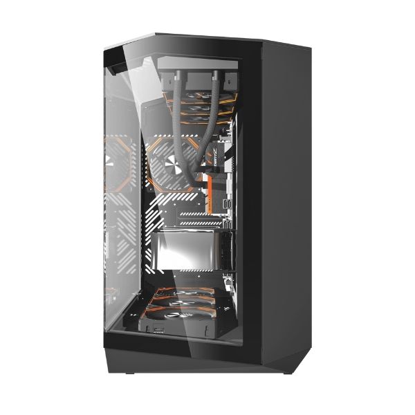 The DarkFlash DY470 is a premium mid tower designed for builders who want a clean panoramic look with strong cooling performance. The case features dual tempered glass panels that showcase the entire build while maintaining structural strength. With wide airflow paths and multi angle fan mounting locations, it easily supports high performance gaming and workstation components.