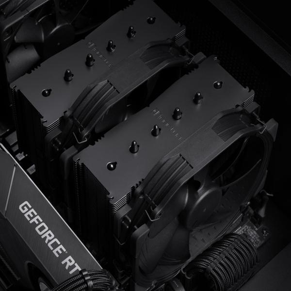 The chromax.black edition features a sleek matte-black coating on heatsinks, heatpipes, mounting parts, and fans, making it perfect for clean, stealth builds without compromising performance.